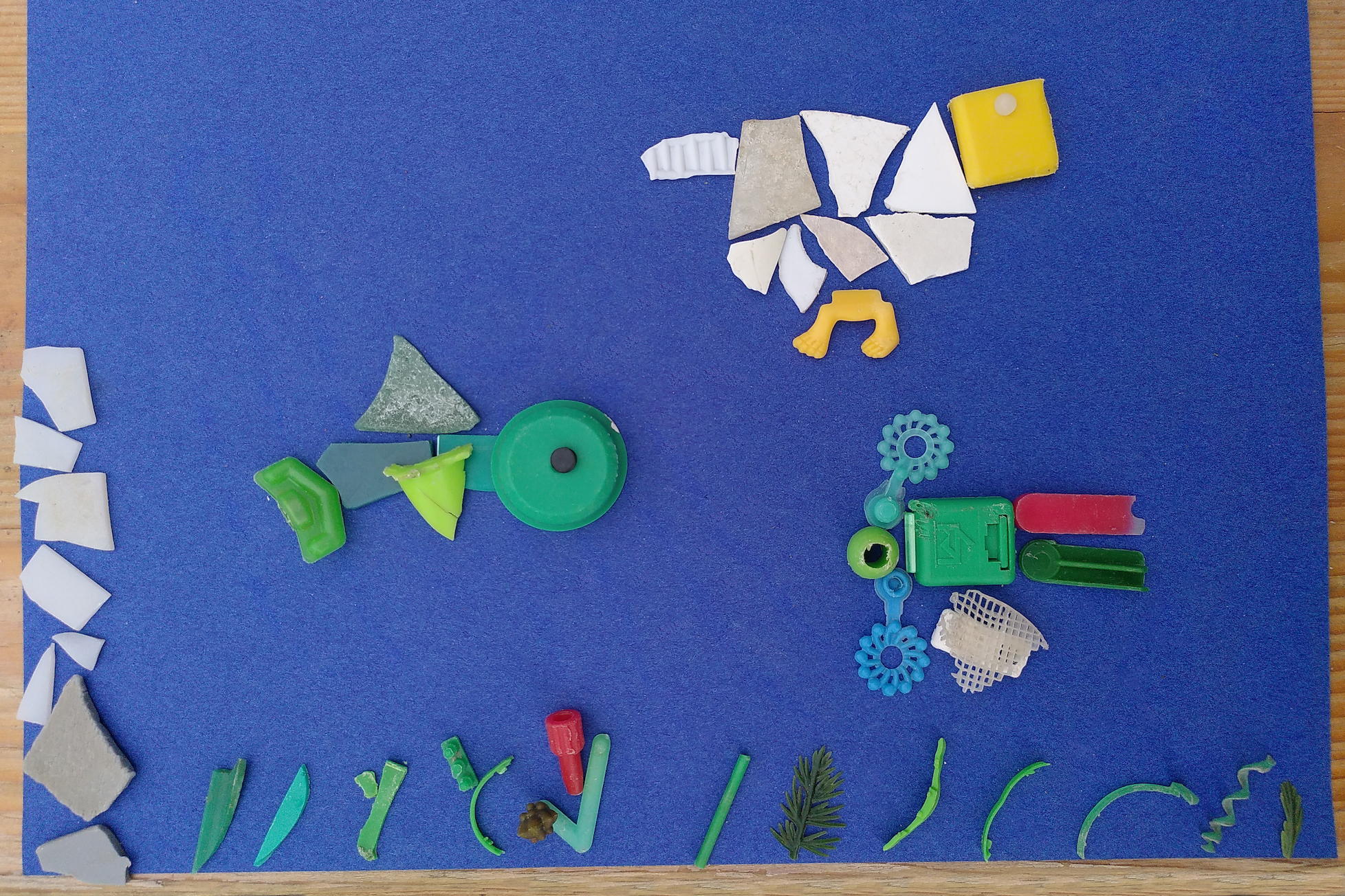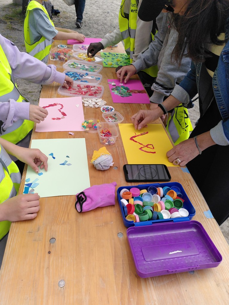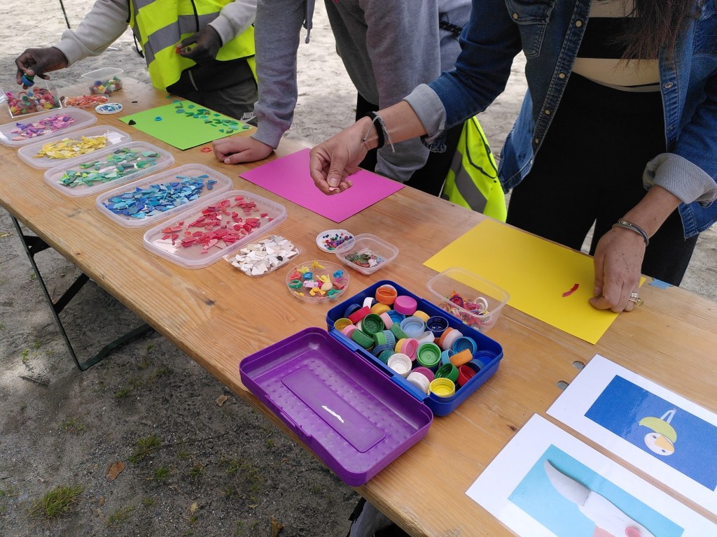 La fragmentation du plastique ainsi que les petits plastiques étaient « à l’honneur » durant cette édition, j’ai donc animé le samedi à Vevey puis le dimanche à la Plage du Pierrier à Clarens un atelier créatif avec des pièces de plastique de moins de 2,5 cm de longueur que j’ai ramassées sur les rives du lac. Les bénévoles ainsi que les passants ont pu participer à ces deux ateliers proposant une sensibilisation à travers l’expression créative à la problématique du plastique dans le lac. Les ateliers ont eu du succès tant auprès des enfants que des adultes, qui ont représenté des paysages, la forêt, la montagne, le lac ou l’océan et ses habitants, des arbres, des oiseaux, des dinosaures, les plongeurs à l’oeuvre en train de ramasser les déchets dans le lac, les gros déchets sortis du lac, etc.